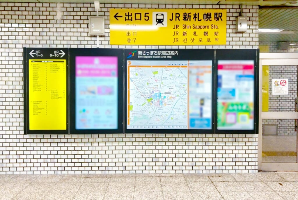 デジタルサイネージが搭載された、東西線 新さっぽろ駅