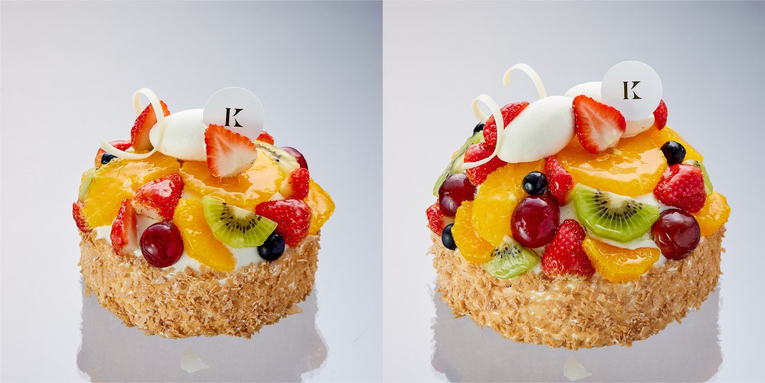 上面には苺、オレンジ、キウイ、ブルーベリー、ぶどうをぎっしりと敷き詰め、ドーム型のスポンジの中にはまるごと苺、まるごとバナナ、オレンジ、キウイが、甘さ控えめのきのとや自慢の生クリームとなめらかなカスタードクリームが一緒に入っています。
