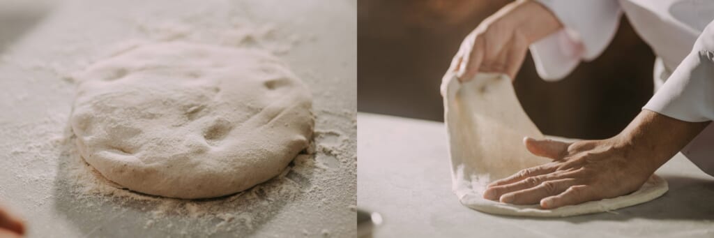 北海道の水・粉・塩を使い、スペルト小麦をブレンド。香ばしく焼き上げる特製生地。