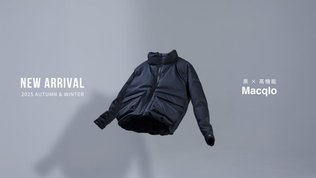会場では、2025年秋冬アイテムの先行発売します。保温性に優れた800フィルパワーで、Macqlo初となる高品質ダウンジャケットや、インナーダウンブランドTAIONとコラボした防水・防風・透湿性に優れたコートなどを展開します。その他、独自開発素材「ultimex/アルティメックス」を使用し、ストレッチや撥水・速乾・耐久性に優れたオリジナルブランド「Macqlo」に加え、様々なブランドの黒のセレクトアイテムを取り扱います。