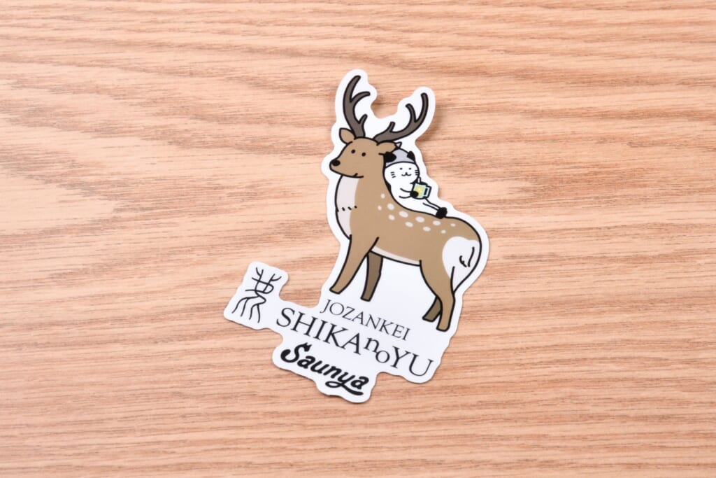サウナ好きな猫をモチーフにしたサウナブランド『Saunya』。今回、北海道で初めてとなる鹿の湯とのコラボが実現しました。えぞ鹿の背中でSaunyaがオロポを飲む可愛らしいイラストをあしらった、当館だけの特別なサウナグッズ。