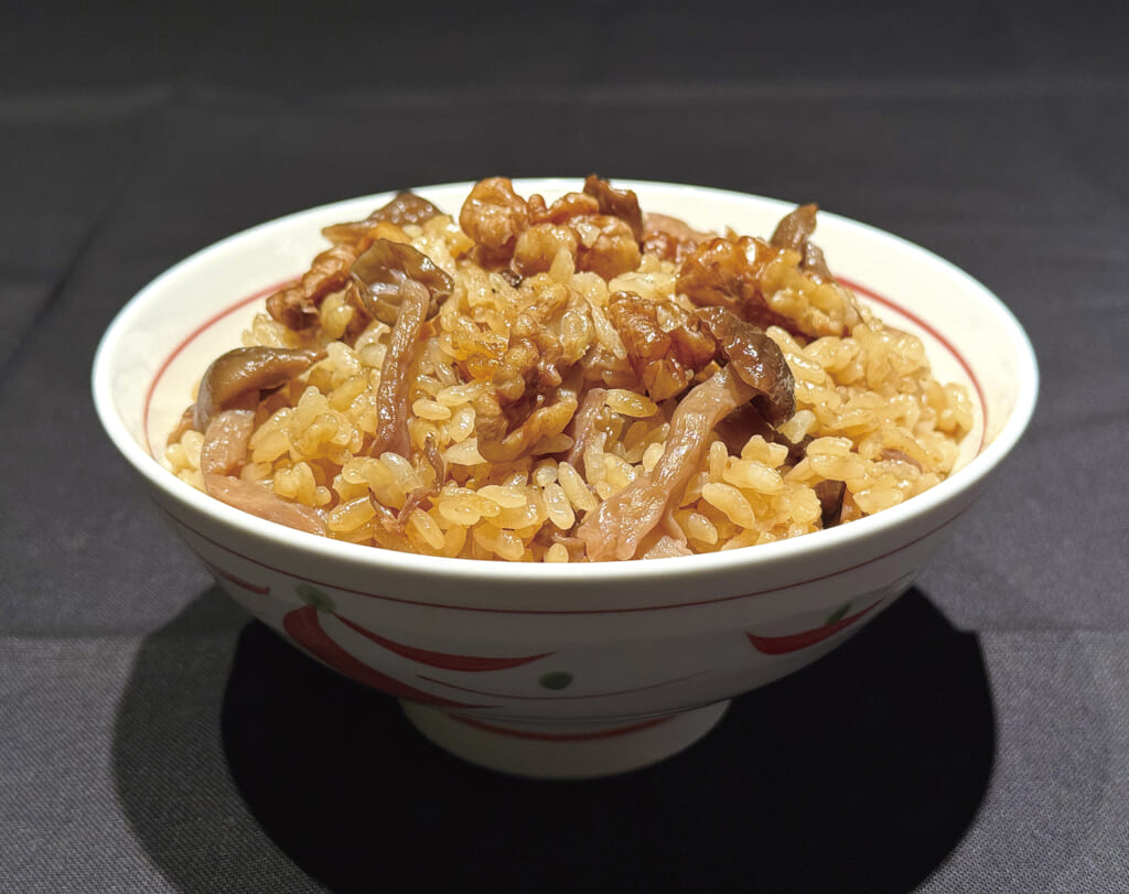 ホクホク香ばしいくるみとシメジを一緒に炊き上げました。