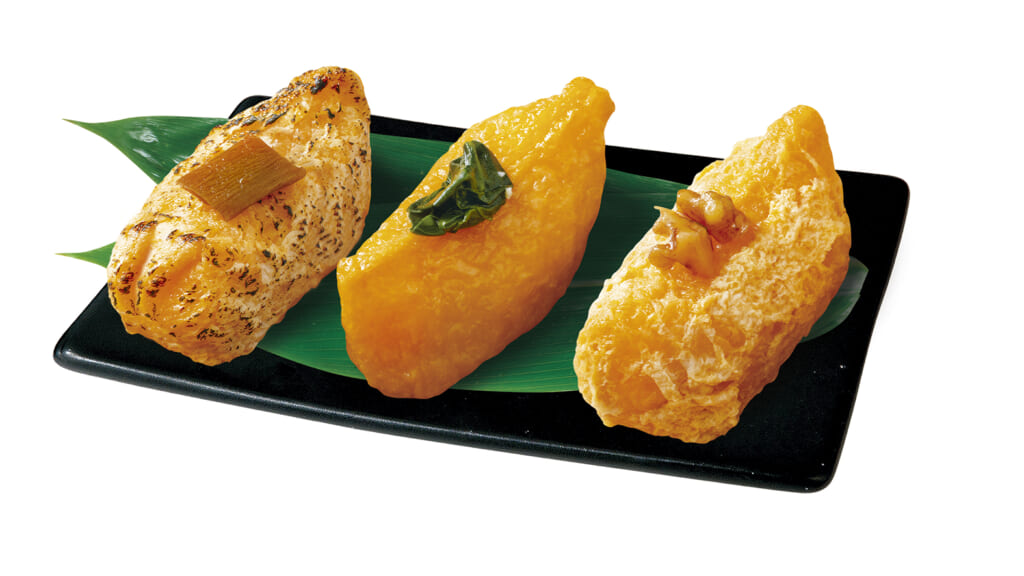 砕いたくるみと柚子をシャリに混ぜ込んだいなりの他、菜の花のわさび漬け、厳選した干瓢を混ぜ込んで出汁いなりで包んだ3種を用意しました。