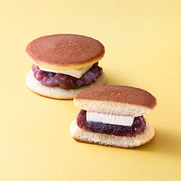 北海道産大納言小豆×塩バターの至福のマリアージュ。今回お作りした「あんバターどら焼」は、北海道産の大納言小豆餡を使用し、餡の味が際立つよう小豆餡の上に、ほんのり塩味の効いたなめらかなバターを乗せました。上質な卵をふんだんに使った口溶けの良い皮でキュッと挟んでいます。