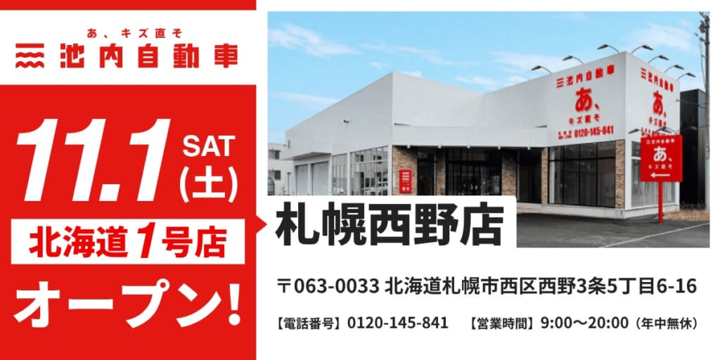 北海道初出店!板金塗装の池内自動車が札幌に2店舗(西野・真栄)を連続オープン