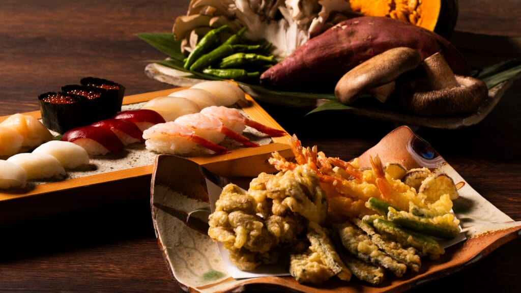 - 「握り寿司/天ぷら/茹で蟹(オプション)」