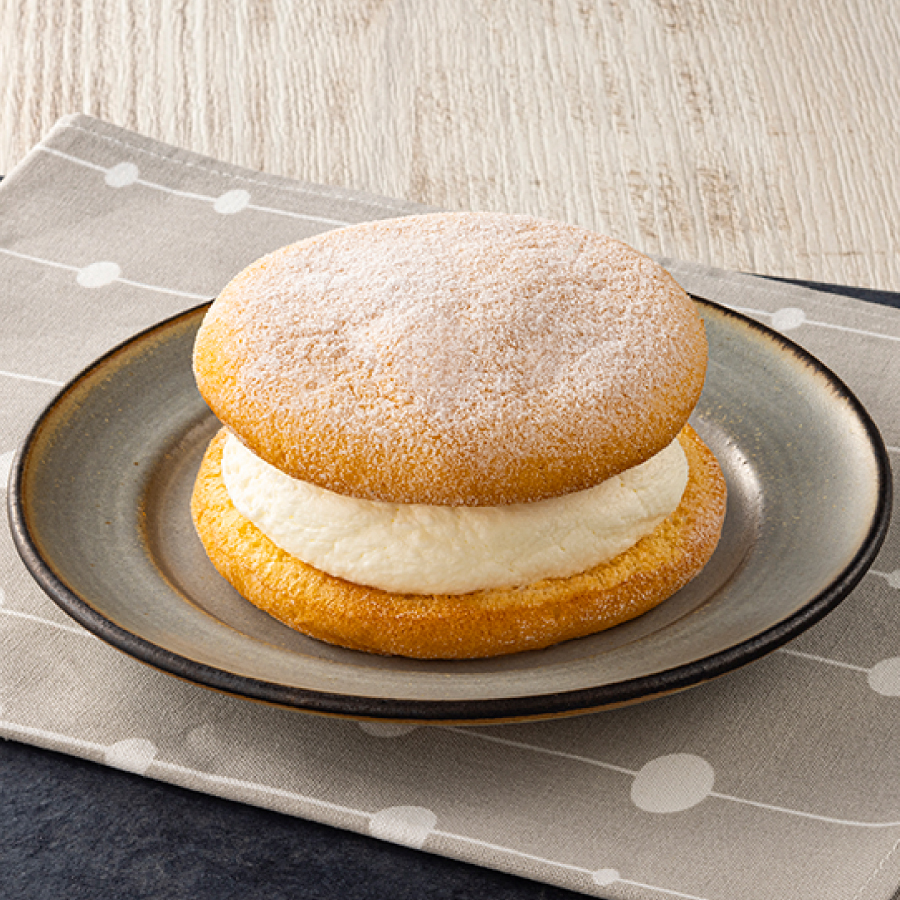 北海道産牛乳を使用した、くちどけの良いしっとり食感のスフレ生地に、ミルクのコクが感じられるホイップクリームをサンドしたワンハンドで食べやすいスイーツです。