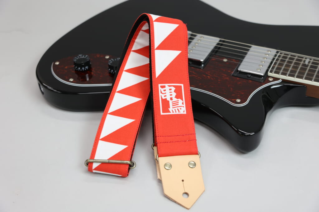 串鳥各店の外観でおなじみの紅白デザインと「串鳥」ロゴをあしらった、存在感抜群のギターストラップ。ステージ上でも目立つこと間違いなしです。