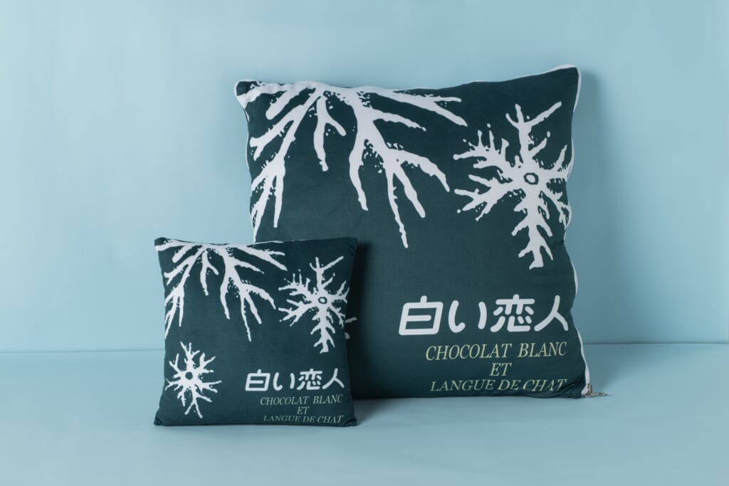新商品のクッションブランケットをはじめ、「白い恋人」のクッションシリーズもおすすめです。持ち運びしやすく、どこでも使える「ミニクッション」。また、表側は個包装デザイン、裏返すとラング・ド・シャクッキーのデザインが楽しめる「リバーシブルクッション」も大人気。気分に合わせてデザインを変えられ、自宅や車など様々なシーンで「白い恋人」の世界観を楽しめるアイテムです。