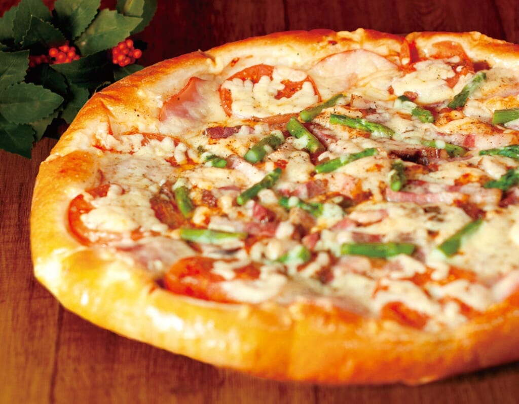 商品名:ゆめちから・でっかいど~!ピザ イベリコ豚ベーコンとバジルピザ