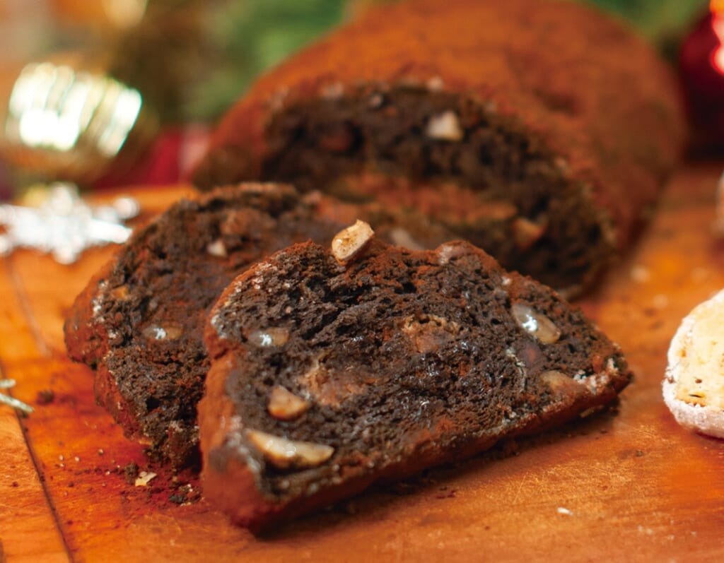 ココアパウダーとチョコチップ・マカダミアナッツがたっぷり!甘すぎず食べやすいシュトーレンです。