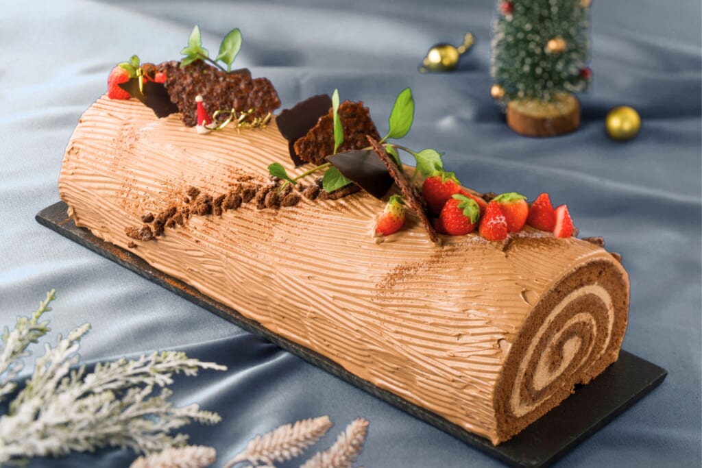 40名分にもなるビッグサイズのブッシュドノエルは迫力満点。パティシエが心を込めて手作りし、その場で丁寧に切り分けます。