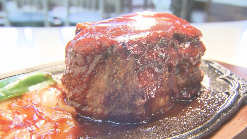 目の前に現れたのは、巨大な肉の塊「ポークチャップ」。その量は、なんと700g!