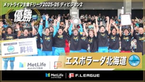 エスポラーダ北海道が、本日12月7日(土)に行われた「メットライフ生命Fリーグ2025-26 ディビジョン2」の第18節、「エスポラーダ北海道 vs マルバ水戸FC」の結果をもって、見事にF2優勝を決め、さらに来季のF1ディビジョン1への昇格が決定しました。
