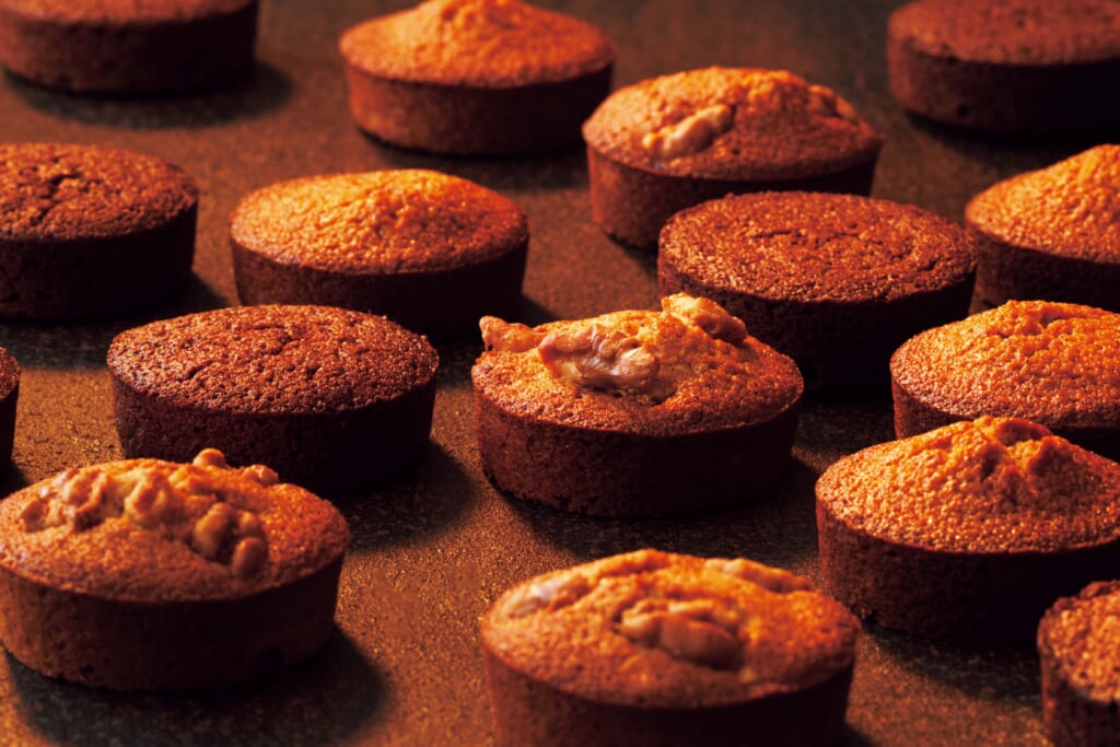 メープルシュガーやカラメルソース、紅茶の茶葉などを加えた生地に、甘く煮てシナモンで香り付けした一口大のりんごを入れ、じっくりと焼き上げました。ドーム型の生地のトップは、砕いたくるみとフォンダン(砂糖衣)で飾り付けています。メープルのやさしい甘さにりんごと紅茶の華やかな風味が重なり合う、冬限定のヴィジタンディーヌです。