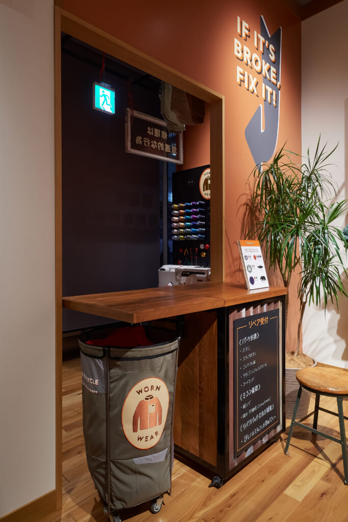リペアブースの常設には、せっかく買ったパタゴニアの製品をできるだけ長く使用してもらいたいという想いが込められています。