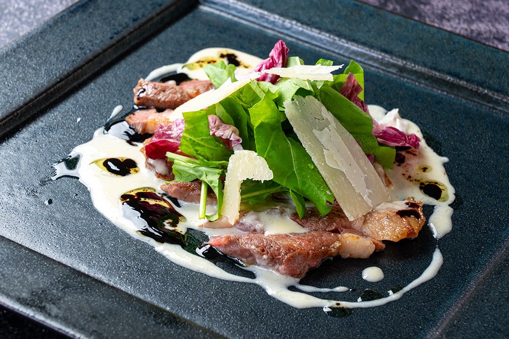 【メニュー名】十勝若牛のタリアータ~チーズソース~(約90g)