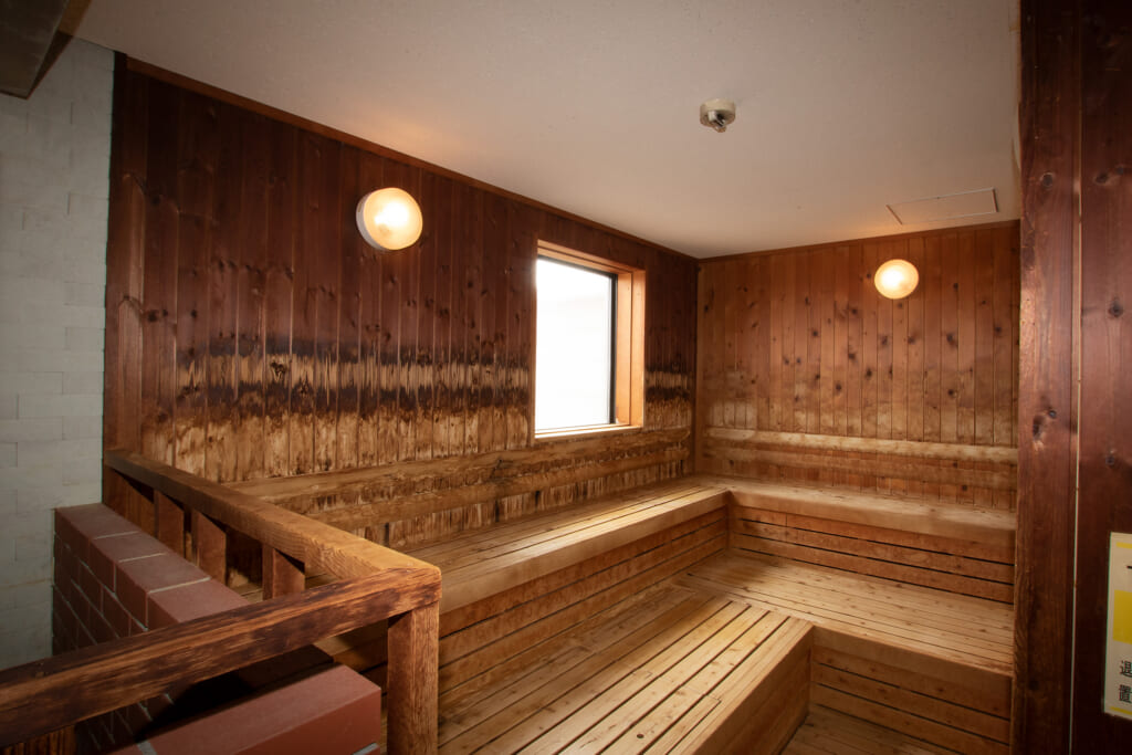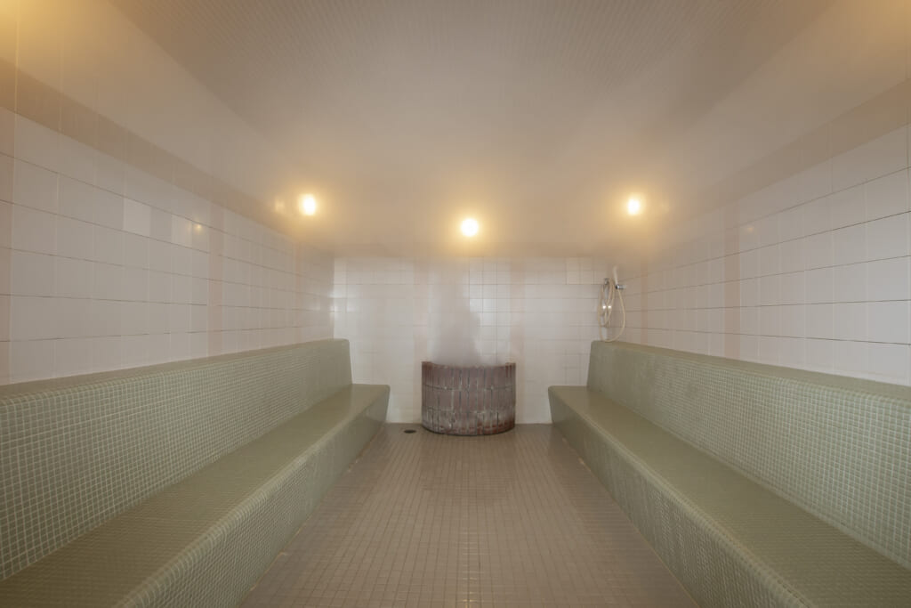 湯けむりの丘 つきさむ温泉では男性風呂と女性風呂で、それぞれ2種類のサウナが利用できます。男性風呂には、90~100度の高温サウナの「スタジアムサウナ」と、50~60度の「低温サウナ」が、女性風呂には80~90度の「高温サウナ」と、約40度の室温でヨモギの香りのミストを楽しめる「テルマーレ」があります。