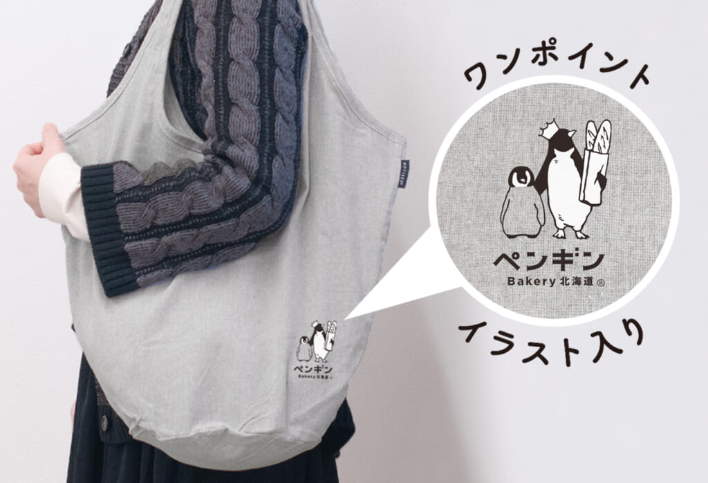 イラストをさりげなくあしらったオシャレなオリジナルマルシェバッグ。このマルシェバッグを持ってペンギンでお買い物をすると、毎回お会計から5円引きに!