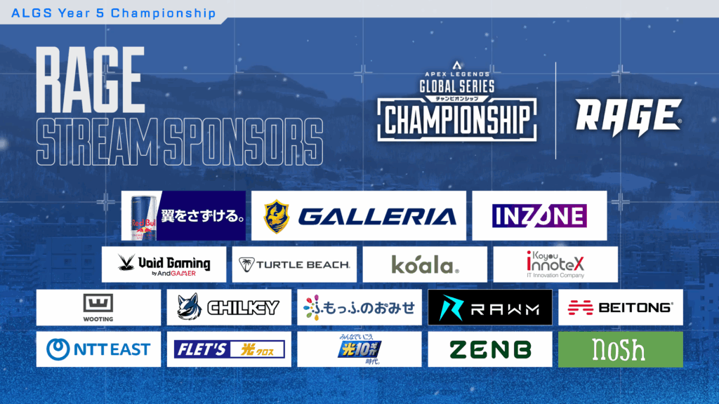 国内最大級のeスポーツイベントブランド「RAGE(レイジ)」は、エレクトロニック・アーツ社が主催するバトルロイヤルシューティングゲーム「Apex Legends」の公式大会「Apex Legends Global Series(ALGS)Year 5 Championship」を、2026年1月15日(木)より配信します。同大会は、札幌市の大和ハウス プレミストドームにて開催されます。
