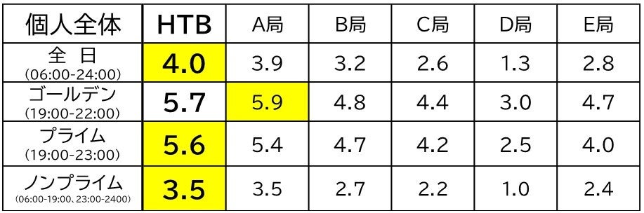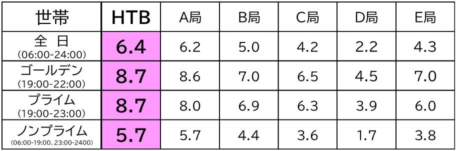 HTB北海道テレビ放送は、2025年「年間」の札幌地区視聴率において、個人全体視聴率(4才以上)は全日・プライム・ノンプライムの3冠を達成しました。世帯視聴率は全日・ゴールデン・プライム・ノンプライムの4冠に輝きました。世帯視聴率のノンプライム1位は、開局以来初です。
