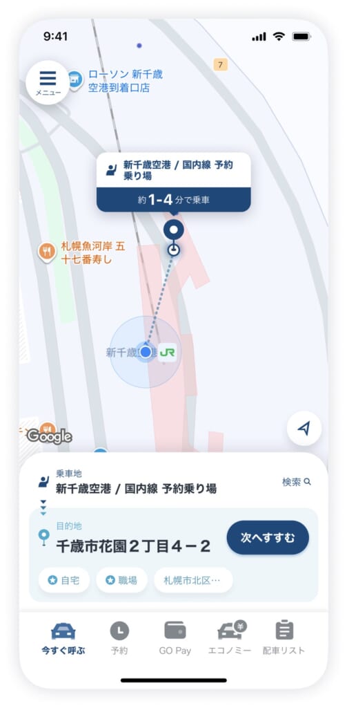 - 対象条件:初回利用者限定・新千歳空港発着限定の配車