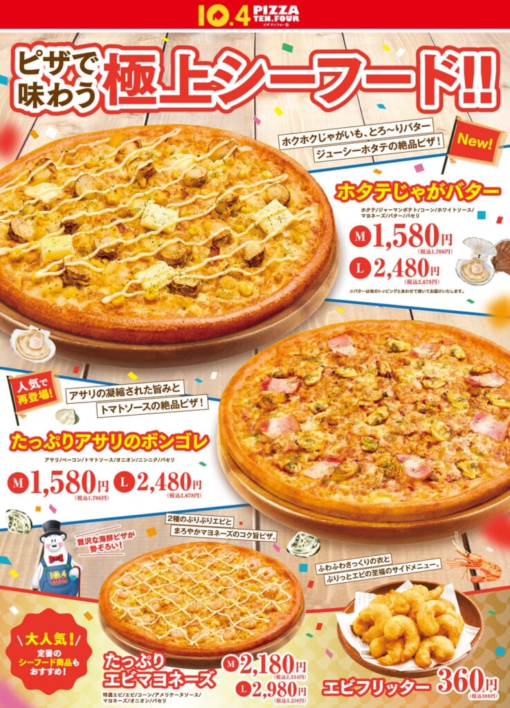 北海道生まれの宅配ピザチェーン10.4(テンフォー)を運営する、株式会社テンフォーは、ジューシーなホタテとホクホクのじゃがいも、濃厚なバターをあわせたピザ『ホタテじゃがバター』を2026年1月31日(土)より発売します。また昨年、期間限定で販売し再販売のリクエストの多かったピザ『たっぷりアサリのボンゴレ』をあわせて復刻販売します。
