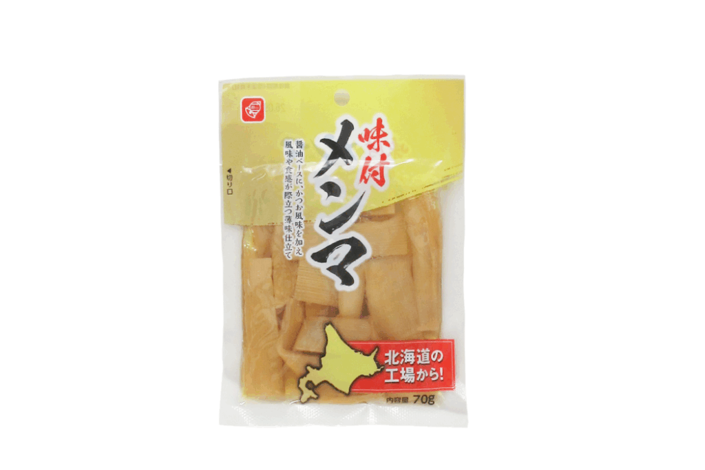 北海道製造ならではの安心感と、日常使いしやすい味わいで、家庭の食卓でも手軽に楽しめるメンマです。