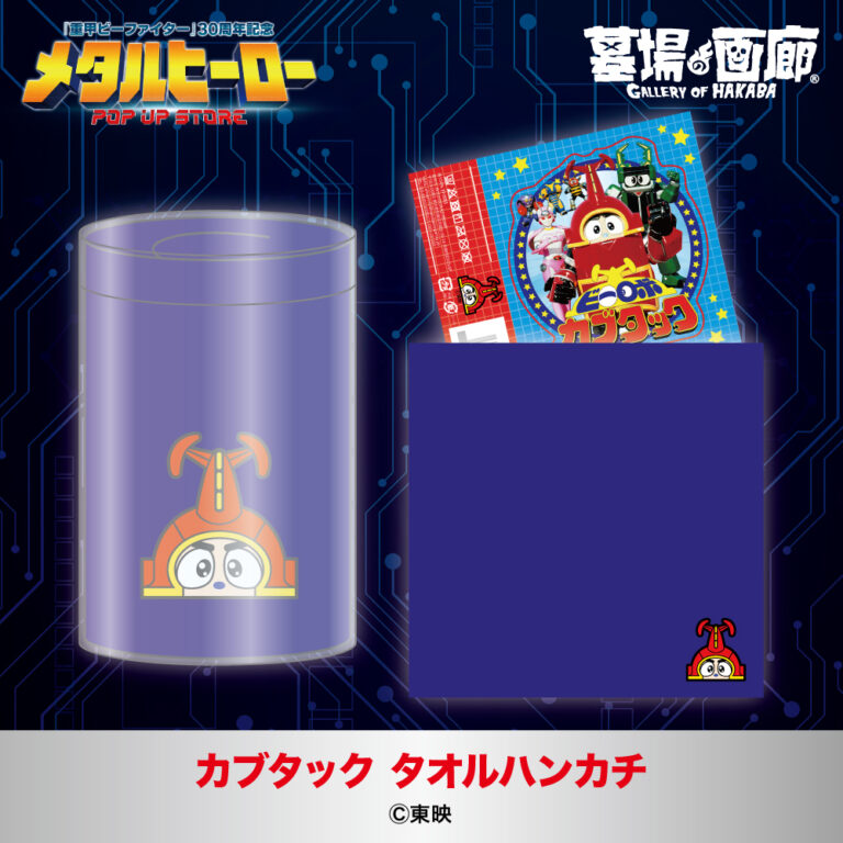 メタルヒーローシリーズの中でも可愛らしさの際立つ『ビーロボカブタック』の愛嬌ある表情が、ワンポイント刺繍で施されたタオルハンカチが登場!当時物を彷彿とさせるファンシーグッズ風のケース台紙はシールにもなっているお得な仕様!ファン必携の愛すべき1枚だ!