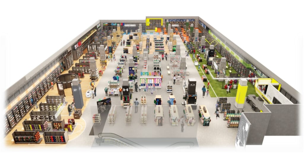 売場面積約1,500坪を誇る北海道エリア最大級の体験型店舗として、日常に溶け込むランニング・フィットネス・アパレルから、プロ仕様の野球・サッカー・バスケットボール等の専門競技アイテムまで、圧倒的なスケールで展開。