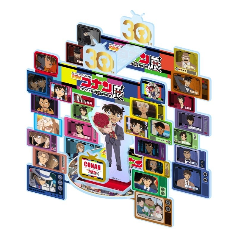特典付き入場チケットは、コナンと30キャラクターがデザインされた「アクリルディスプレイスタンド」を会場で受け取ることができるグッズ付きの入場券となります。
