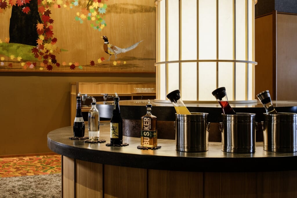 挽きたてのコーヒーやソフトドリンクに加え、アルコールには様々なリキュールも用意。炭酸水サーバーを活用して、ご自身でアレンジする「自分仕立てのカクテル」を愉しめるのも魅力です。湯上がりの一杯や、食後のリラックスタイムに最適な一杯を。