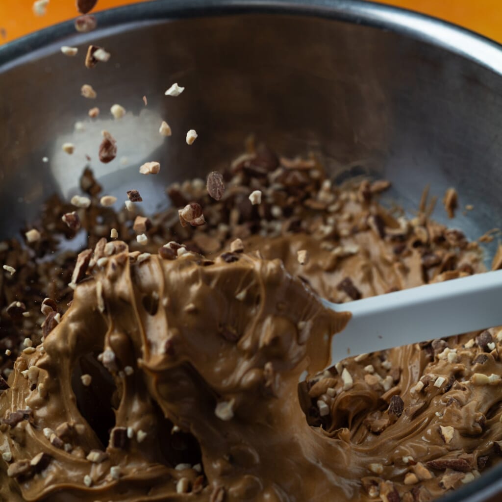 キャラメルとナッツをより、楽しんでいただくために中身はたっぷりと、外の生地は薄めに設計しました。また、絶妙な火加減で焼き上げることによって、サク・ほろ・ふわっとした心地よくほどける食感にこだわり、試行錯誤を繰り返しました。