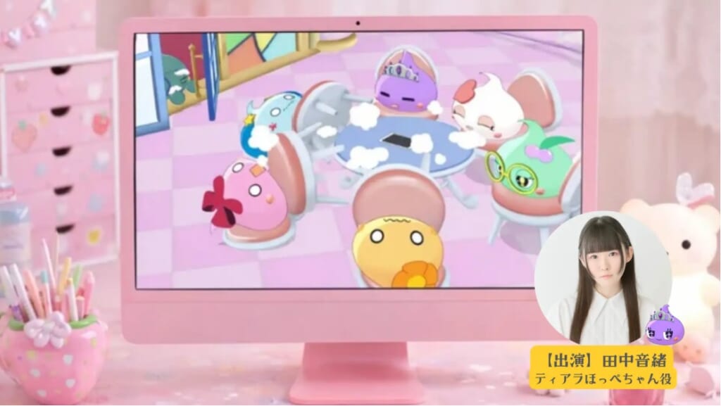お子様といっしょに演じてくれるのはアニメ『ほっぺちゃん』で「ティアラほっぺちゃん」を演じる田中音緒さん。