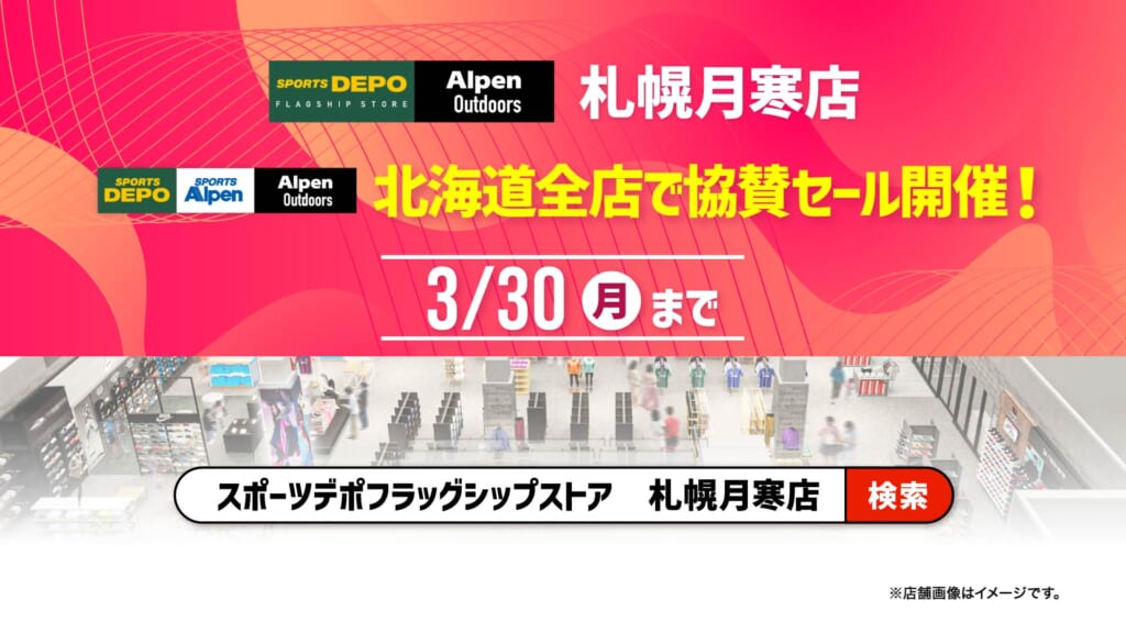 また、2026年3月19日(木)から3月30日(月)までの12日間、北海道内のスポーツデポ・アルペン・アルペンアウトドアーズ全店で協賛セールを同時開催します。