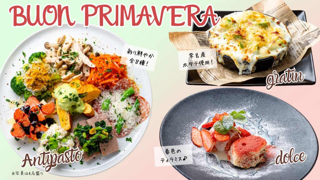 札幌を中心に東北・関東で「北海道イタリアン ミア・ボッカ」「焼鳥ダイニング いただきコッコちゃん」など45店舗を経営する株式会社イーストンは、2026年4月1日(水)より、常呂産ホタテ、そら豆、苺など、春の息吹を感じる厳選食材を使用した期間限定メニューを「北海道イタリアン ミア・ボッカ」にて販売開始します。