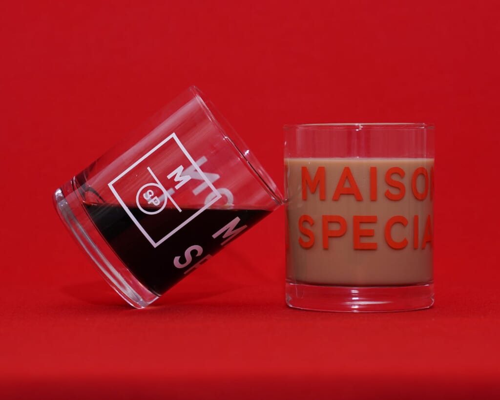 MAISON SPECIALのロゴをあしらったグラス。毎日使いたくなるシンプルなデザインです。