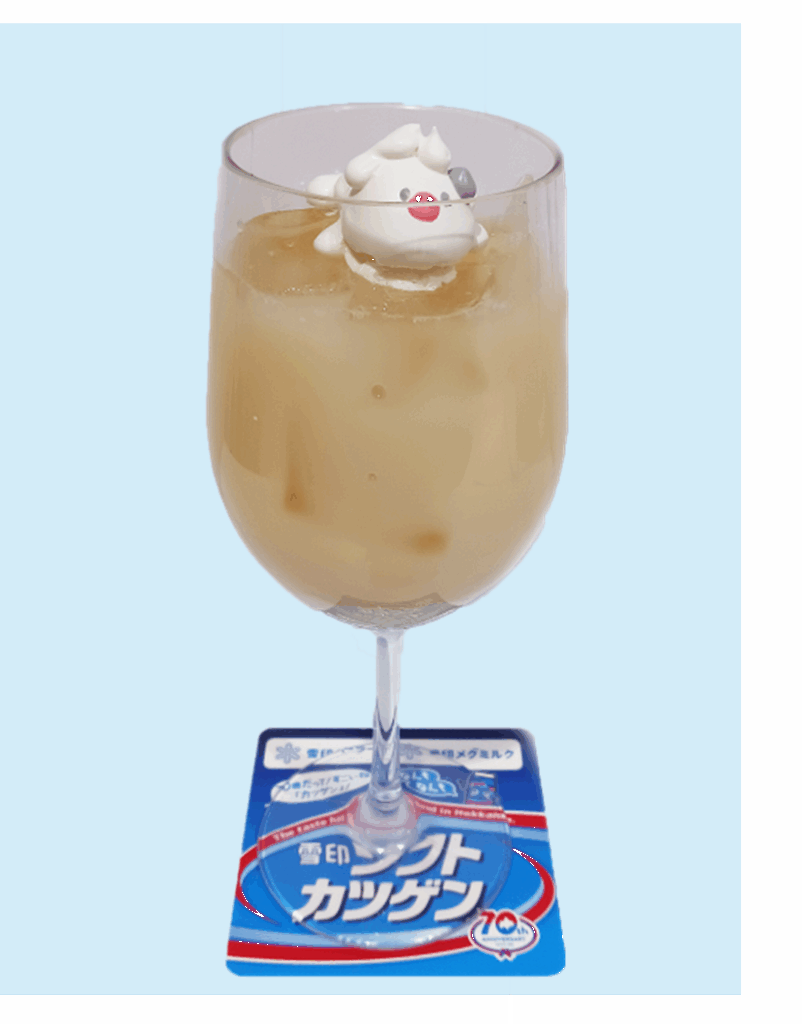 爽やかな酸味の「雪印ソフトカツゲン」に北海道産生乳をブレンド。くず餅入りで、もちもち食感を楽しめる新感覚ドリンクです。手作りメレンゲの「うし」をトッピング、70周年専用コースター付きで提供します。店内限定、期間限定販売。