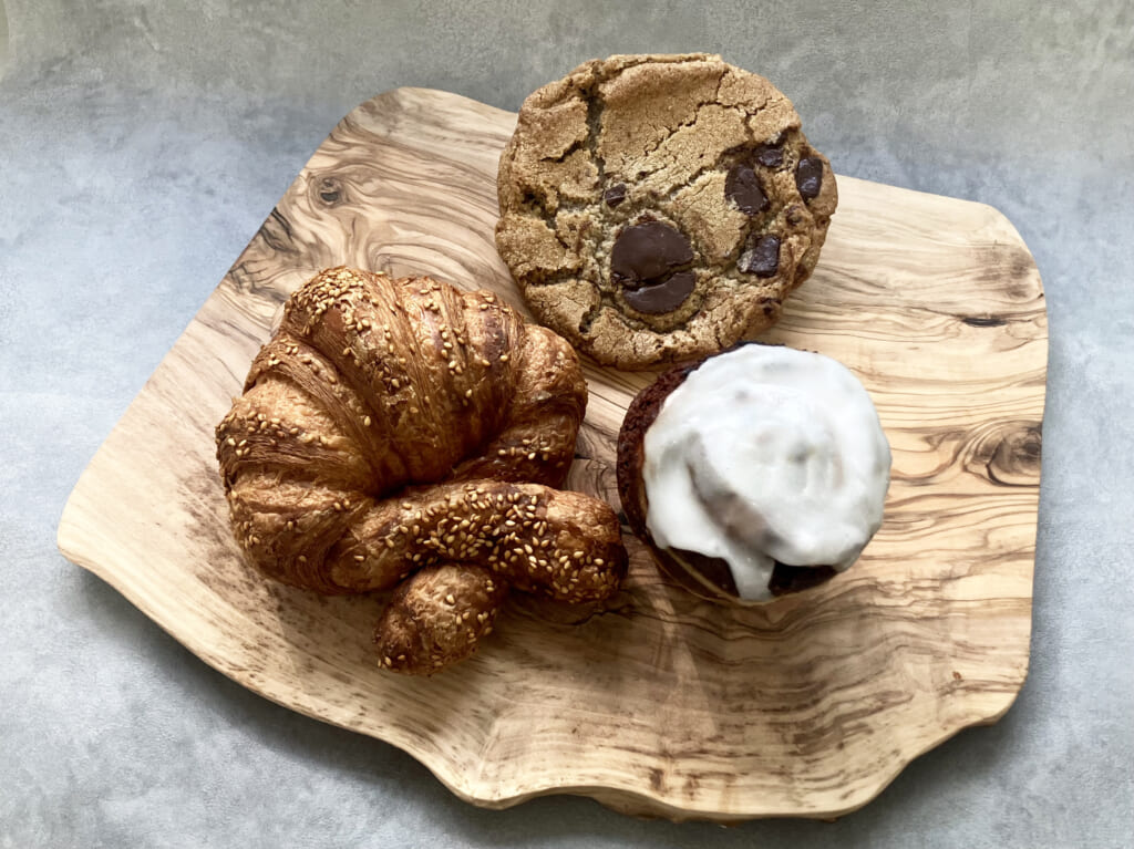 「プレッツェルクロワッサン」NYレシピを受け継いだ、THE CITY BAKERYの代名詞。甘みのある生地に岩塩とゴマを振りかけた、甘じょっぱさがクセになる一品。