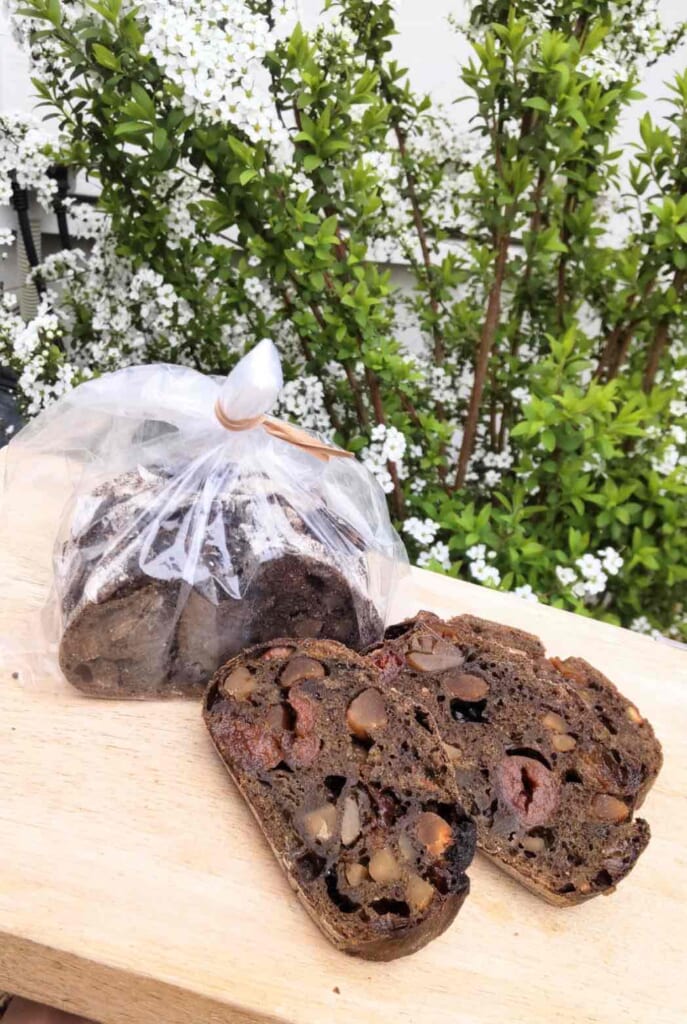 「サングリアロッソ」ジューシーで大粒の焼きレーズンを赤ワインで漬け込み、オレンジピールと4種のスパイスを練り込みました。イタリア産赤ワインをたっぷり含んだもちもち食感のパンです。