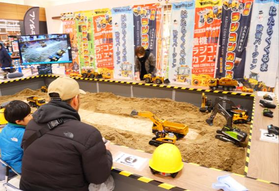 イベント期間中は、実際にレンタルできる車両の車内見学や予約ブースを設置します。事前に予約したキャンピングカーは、イオンモール札幌平岡で受付から返却まで一括で行える仕組みで、キャンピングカー使用中はイオンの駐車場にお客さまの自家用車を駐車することができます。また、イオン店内でキャンプに必要な食品や衣料品、コップ、お皿などすべて揃えることができるため、手軽にキャンプにお出かけすることが可能です。さらに、今年1月に開催し大人気だった重機ラジコン体験も同会場で行います。大人からお子さままで体験でき、本物そっくりのはたらくラジコンを実際に操作することができ、臨場感あふれる操作性を体感できます。