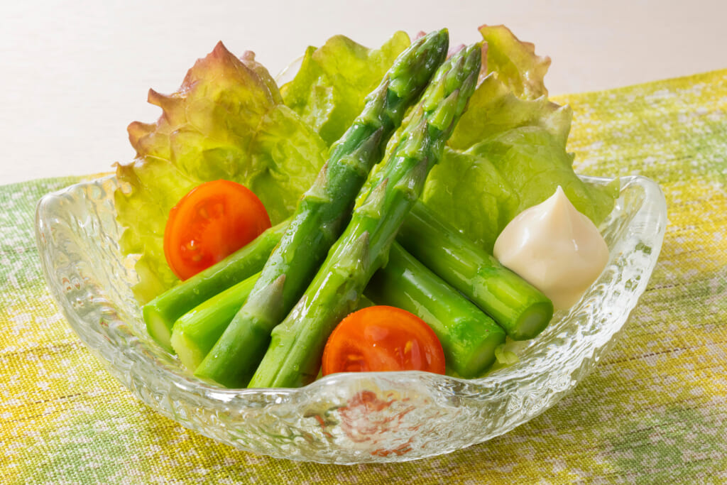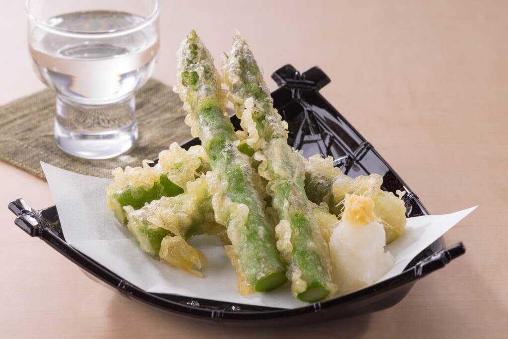 素材本来の味わいを楽しめる春が旬の“北海道産アスパラ”を天ぷらとサラダで用意