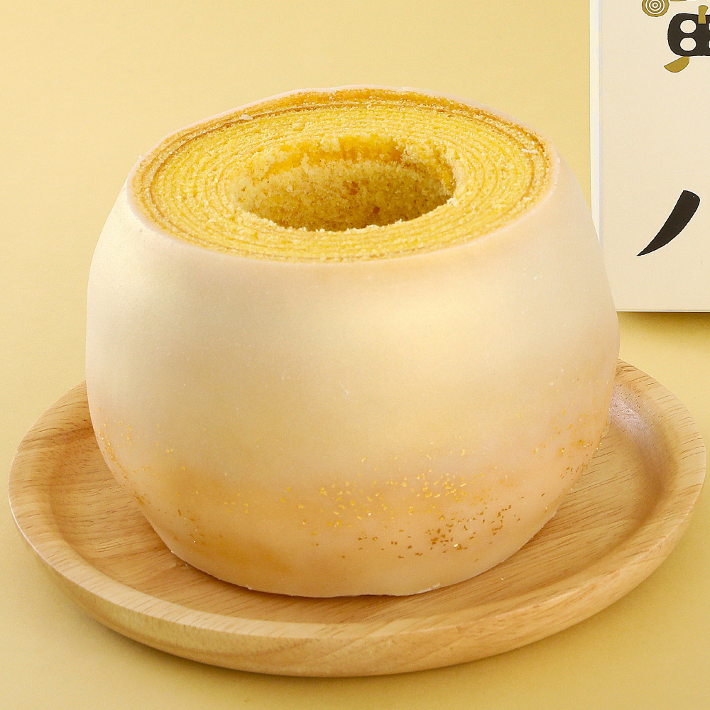 平泉藤原三代の黄金に込めた祈りを、バウムクーヘンで表現。平泉産の金しゃり米(栽培期間中農薬不使用)、黄金の雑穀、黄金の里卵を使用。