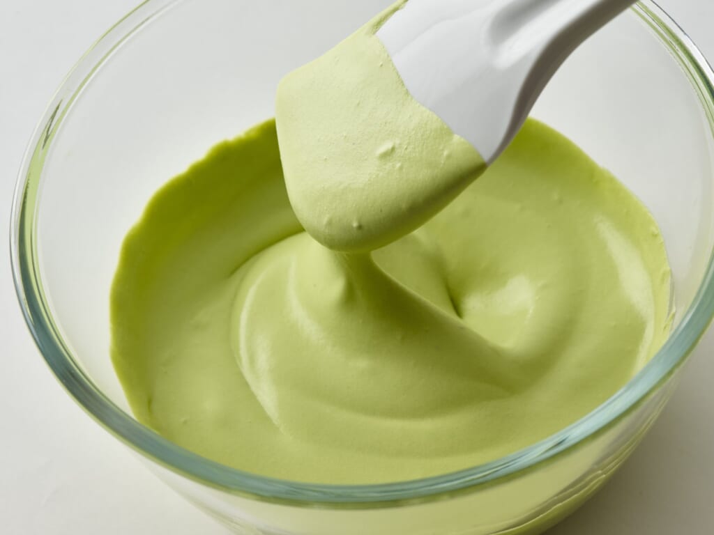 生ノースマンの生クリームに、鹿児島県産の香り高い抹茶を加えた生クリームは、ふんわりと軽い口どけです。抹茶あんとの相性を考慮し、抹茶本来の豊かな風味とほろ苦さを引き立てるよう、甘さを控えめに調整しています。口いっぱいに広がるやさしい甘みと抹茶の香りが重なり合い、最後まで飽きのこないリッチな味わいに仕上げました。
