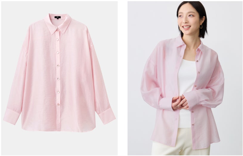 軽やかで、ほどよい透け感のシアー素材が上品なメタルボタンシャツ。ゆったりとしたシルエットでリラックス感がありながらも、肩周りはフィットさせることで着ぶくれしにくいデザイン。